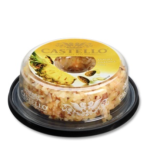 Som ett exempel, vi är 17 personer på morgondagens knytkalas, vilket ju blir en form av buffé. Då kommer jag ha med mig sammanlagt ungefär 1,3 kg ost. På värdparets önskan hade jag tänkt fokusera mest på hårdost, kanske en klassisk Svecia och en god hård getost med lite honung till. Sen tänkte jag slänga in något lite crazy, som den här otippat jättegoda färskosten från Castello, som är rullad i mandel och ananas. Med löfte om tolv grader och regn kan ju festen behöva jazzas upp och bli lite Hawaii, eller vad säger ni?