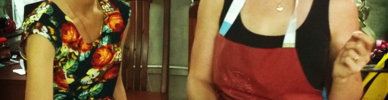 Efter denna upplevelse åkte vi tillbaka till restaurangen. I själva verket hade restaurangen stängt igen för länge sedan och var numera en kombinerad lokal för matlagningskurs och dykarshop. Vi ställde oss glatt och hackade upp våra råvaror mitt bland våtdräkter och syrgastankar. Tydligen var jag den enda av oss tre deltagare som lagade mat till vardags, vilket vi skrattade åt i två minuter, tills stackars Julie nästan skar av sig fingret när hon skulle skiva biffen tunt till biffsalladen. Efter det hamnade det mesta som skulle hackas tunt på min skärbräda på något magiskt sätt, inte mig emot. Jag råkade klia mig på kinden med chilifingrar men jag gned in kinden med lite socker så svedan gick bort rätt snabbt, och annars gick eftermiddagen utan missöden och med mycket skoj.