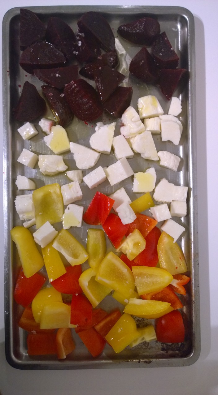 Jag är också stort ett fan av att inte handdiska. Det är kanske den tråkigaste hushållssysslan jag vet. Viker och hänger hellre åtta maskiner tvätt än att skrubba kastruller och ugnsplåtar. Man brukar ju oftast steka halloumi, men eftersom jag ändå ville ha ugnsgrillade grönsaker och halloumin är en så trevlig och flexibel ost fick den åka med i ugnen på samma gång. Boom, en stekpanna mindre att diska.